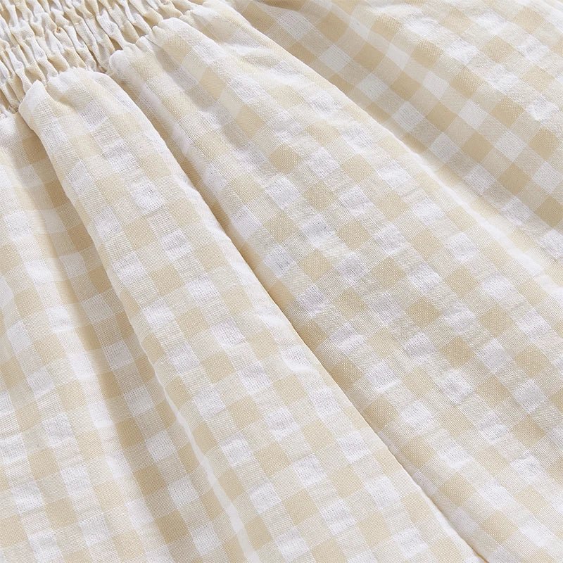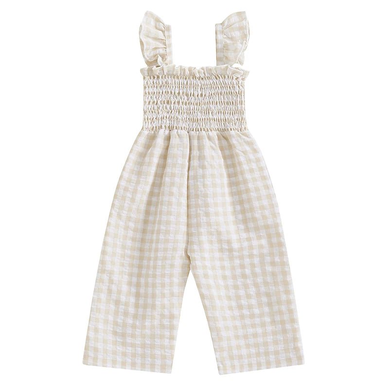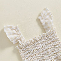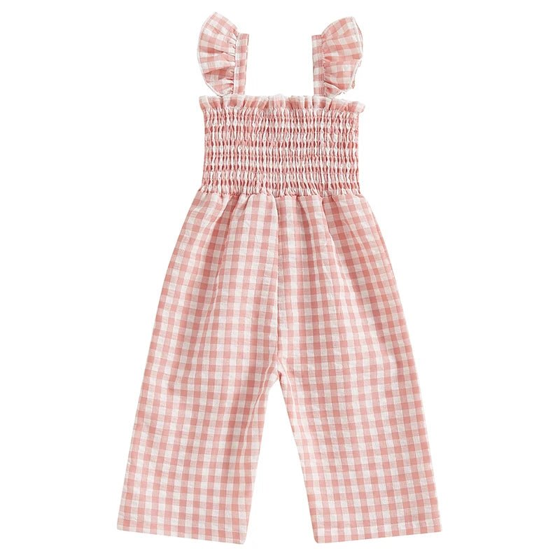 This expertly crafted Gingham Smocked Jumpsuit features a flexible smocked bodice that provides both comfort and style for your little one. The classic gingham pattern in soft pastel hues offers timeless appeal, while the durable construction stands up to active babies and toddlers. Perfect for everyday wear or special occasions with easy on-and-off design for quick changes.