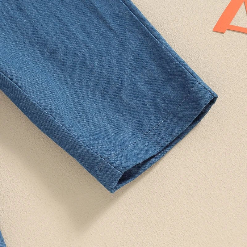 Expertly designed for babies and toddlers, our Miss Americana Denim Jumpsuit is the perfect addition to any patriotic wardrobe. This stylish jumpsuit features a large American flag bow detail on the bodice and a comfortable ruched top. Get ready to celebrate the 4th of July in style with this must-have piece.