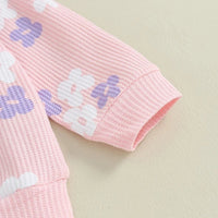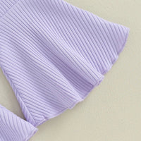 This set features a charming floral graphic, long sleeves, and ribbed flare pants in a soft pastel color palette. Perfect for babies and toddlers, this outfit combines style and comfort for your little one.